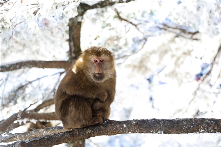 雪中黄山短尾猴,更显憨态 樊成柱/摄