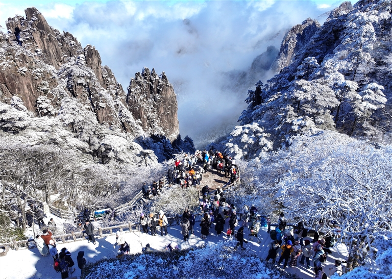 2026年新年伊始,我市迎来首场降雪。黄山风景区、歙县箬岭、徽州天路、搁船尖等地,被白雪覆盖,银装素裹、玉树琼枝,宛如一幅静谧铺展的冬日长卷,吸引了大批海内外游客登山赏雪。