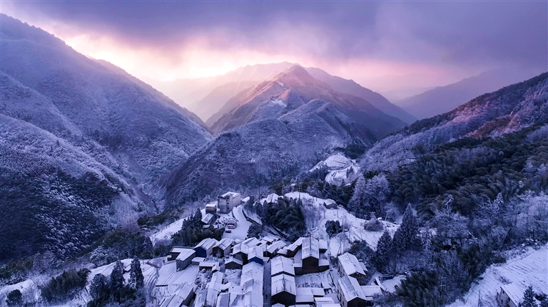 箬岭雪后,霞光染峰如幻 郑寒/摄